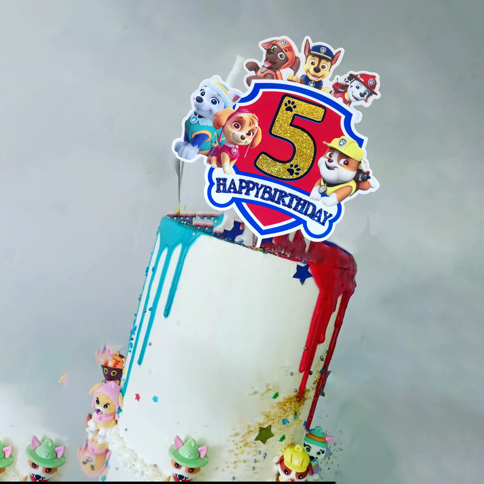 🐾狗 5 岁生日装饰品:蛋糕礼帽是专为卡通爱好者的孩子设计的,它 将是您孩子 5 岁生日的精美蛋糕装饰,打造出色而可爱的派对装饰。